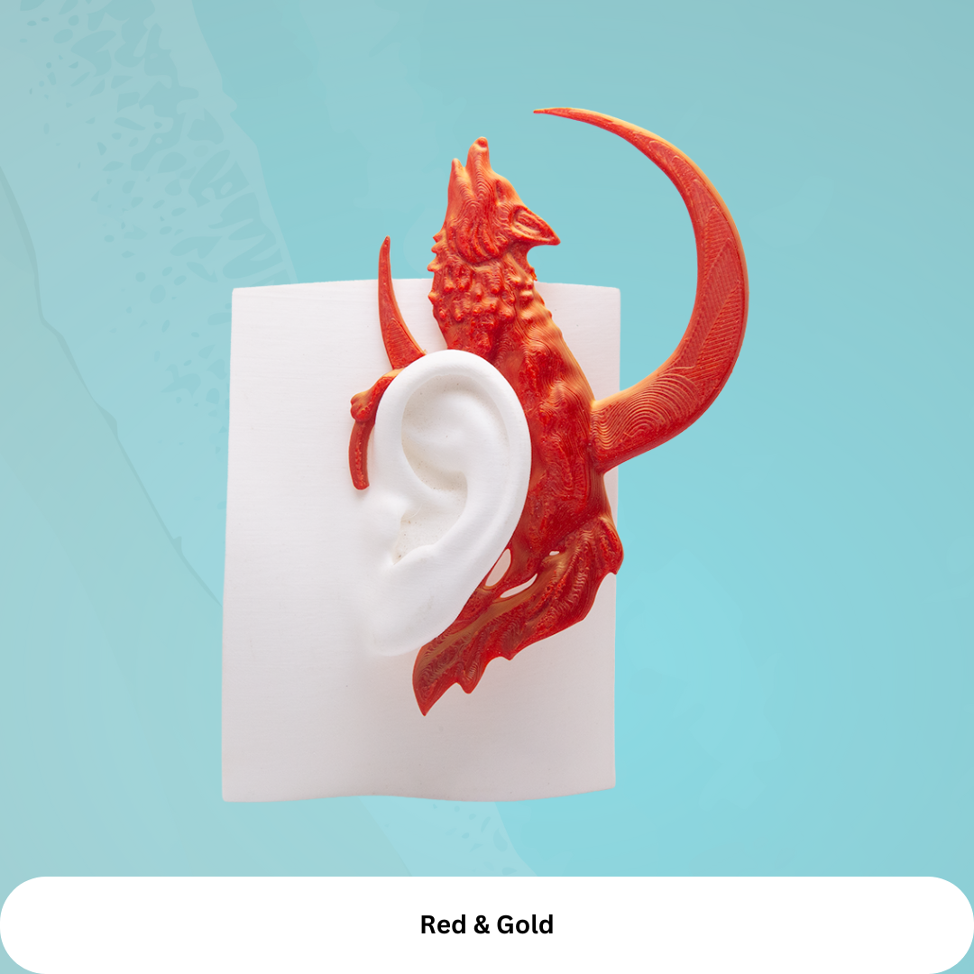 The Dire Wolf Moon Ear Cuff captures a wolf reaching toward a crescent moon, symbolizing memory, resilience, and the magic of what can return when we choose to care. It is a bridge between the wolves of our past, the science shaping our future, and the quiet magic that lives in art.