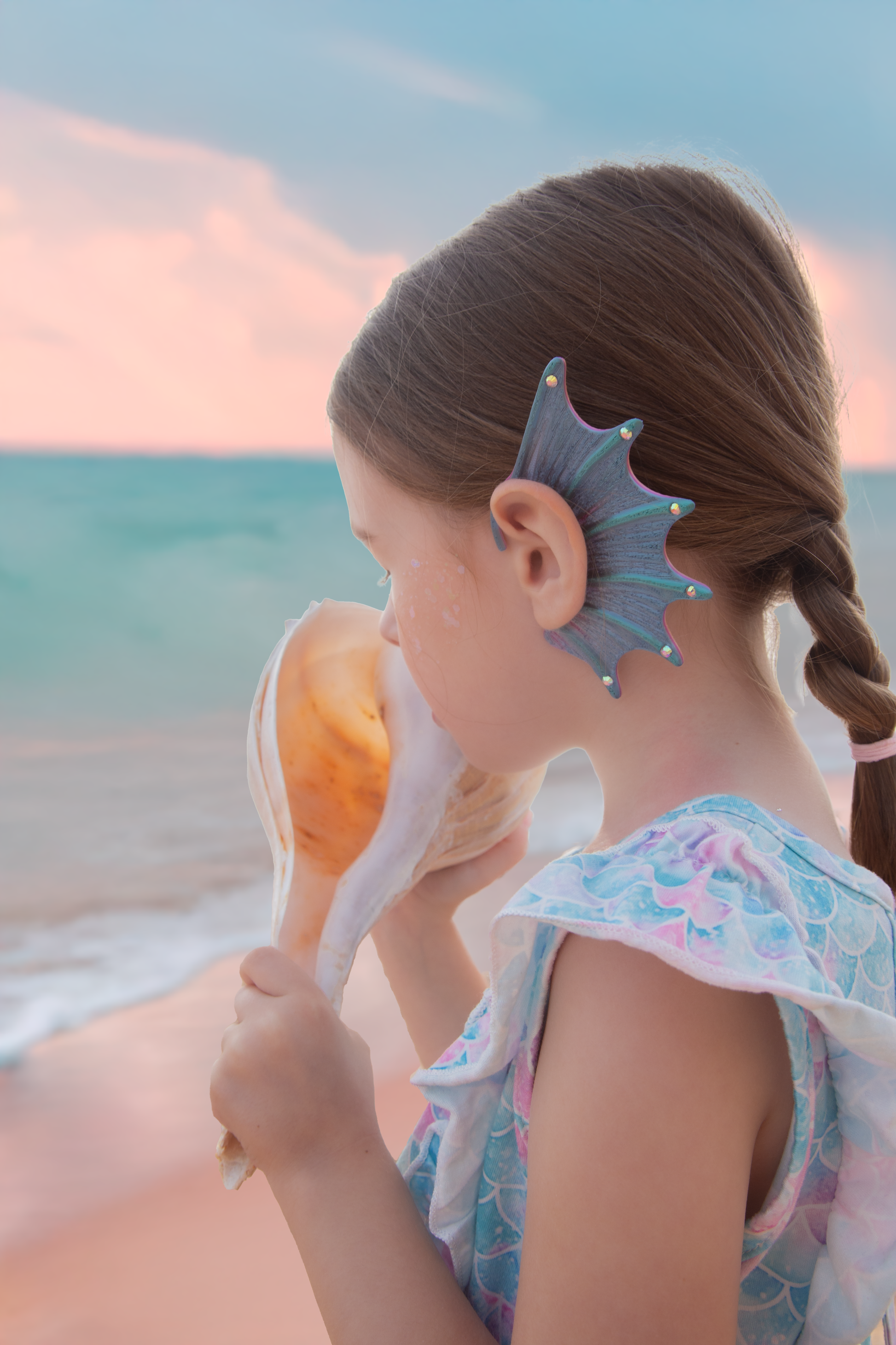 The Tideflare Ear Cuff is a radiant fin-shaped statement piece designed to make waves. With sweeping flared ridges, shimmering crystal gem accents, and a lightweight fit, this cuff brings bold mermaid energy to any outfit — from everyday enchantment to full-blown cosplay.